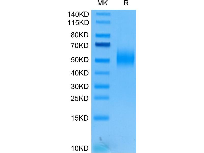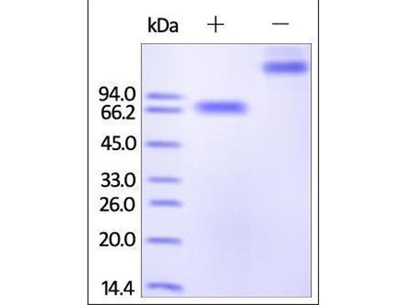 The purity of the protein is greater than 95 % as determined by SDS-PAGE and Coomassie blue staining.