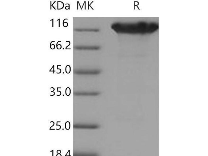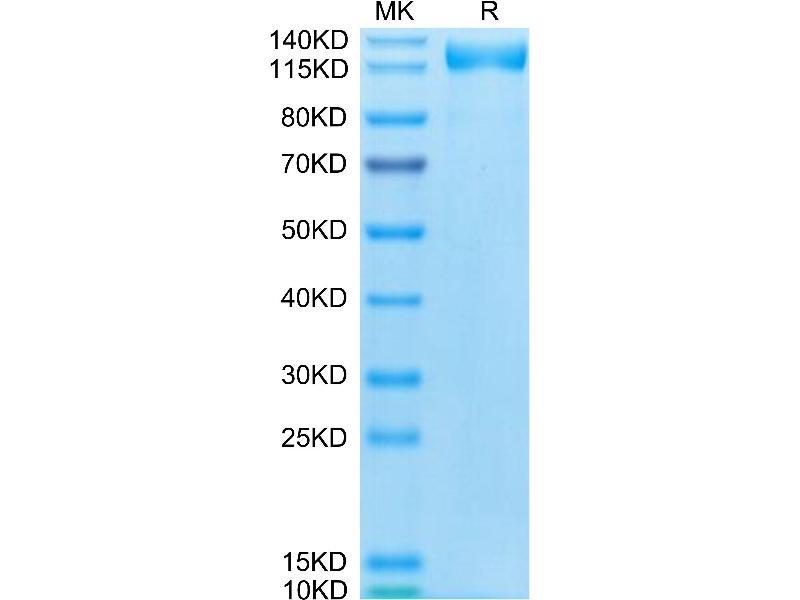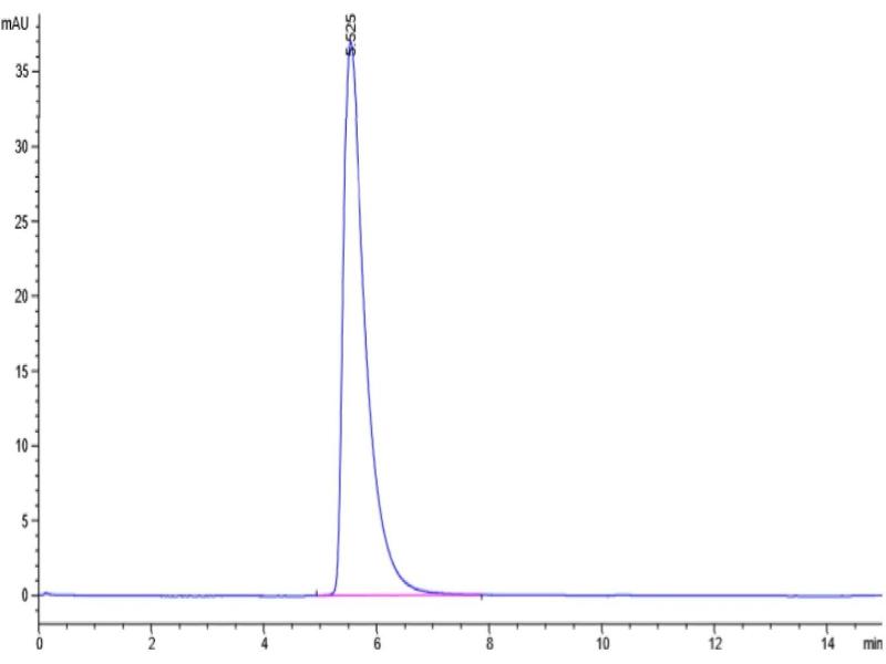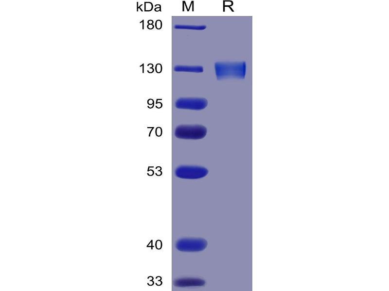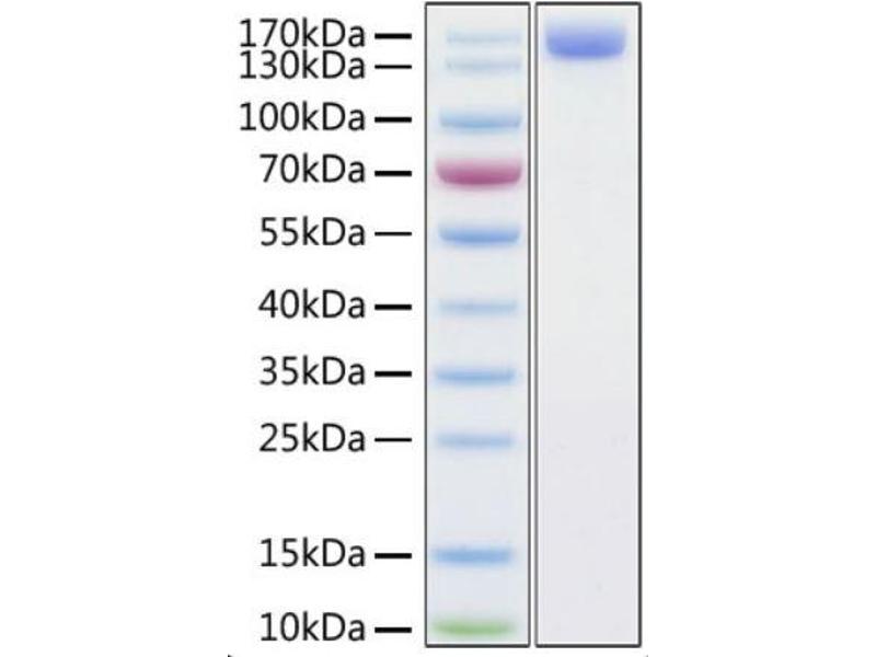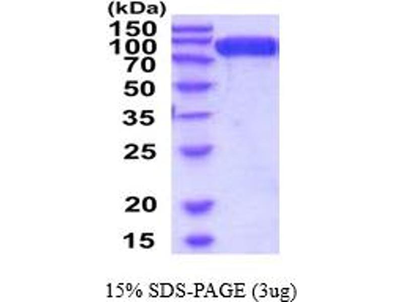 The purity of the protein is greater than 95 % as determined by SDS-PAGE and Coomassie blue staining.