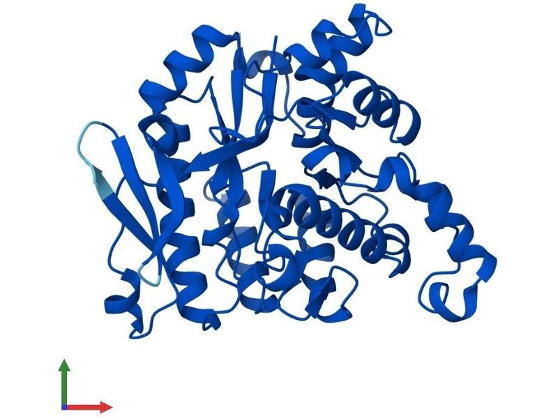 The neuronal excitotoxin quinolinate is an intermediate in the de novo synthesis pathway of NAD from tryptophan, and has been implicated in the pathogenesis of several neurodegenerative disorders. Quinolinate is derived from alpha-amino-beta-carboxy-muconate-epsilon-semialdehyde (ACMS). ACMSD (ACMS decarboxylase\; EC 4.1.1.45) can divert ACMS to a benign catabolite and thus prevent the accumulation of quinolinate from ACMS.[supplied by OMIM, Oct 2004].
