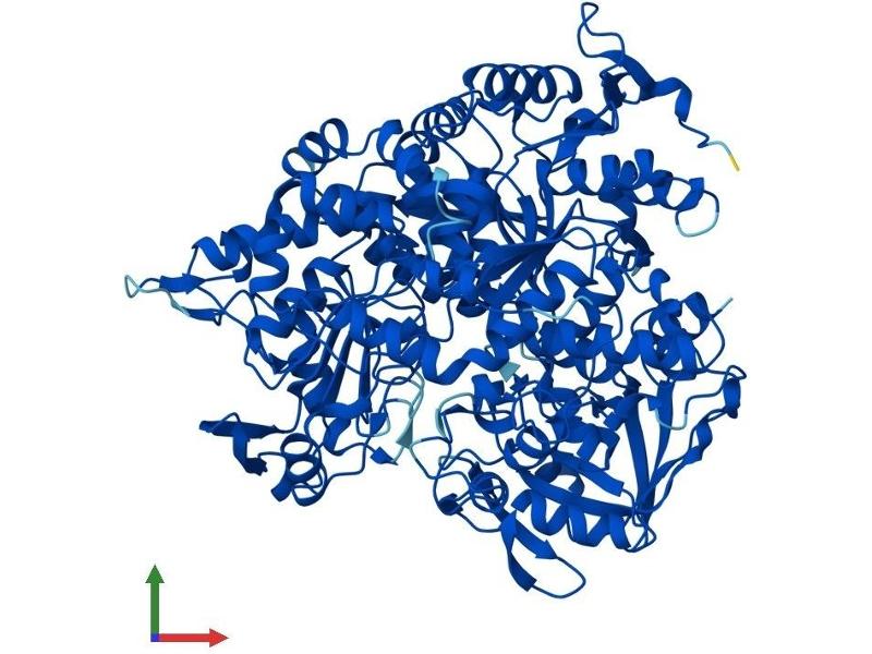 Aconitase 1, also known as iron regulatory element binding protein 1 (IREB1), is a cytosolic protein which binds to iron-responsive elements (IREs). IREs are stem-loop structures found in the 5' UTR of ferritin mRNA, and in the 3' UTR of transferrin receptor mRNA. The iron-induced binding to the IRE results in repression of translation of ferritin mRNA, and inhibition of degradation of the otherwise rapidly degrading transferrin receptor mRNA. Thus, IREB1 plays a central role in cellular iron homeostasis. It was also shown to have aconitase activity, and hence grouped with the aconitase family of enzymes. [provided by RefSeq, Jul 2008].