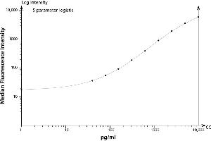 This BD™ CBA Flex Set contains one vial each of Capture Bead and PE Detection Reagent and two vials of Standard. The Capture Bead and PE Detection Reagent components of this flex set have been formulated to a 50x concentration to ensure product performance when multiplexed. The Standard component is lyophilized and should be transferred to a 15 ml polypropylene tube for reconstitution. When reconstituted in 4.0 ml Assay Diluent, the standard has a protein concentration of 10,000 pg/ml. Discard unused reconstituted standard, do not store or reuse. Store lyophilized standard and other components at 4°C. Protect PE Detection Reagent from prolonged exposure to light. -