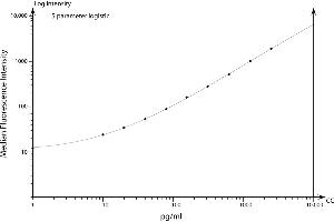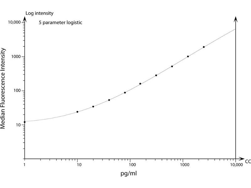 This BD™ CBA Flex Set contains one vial each of Capture Bead and PE Detection Reagent and two vials of Standard. The Capture Bead and PE Detection Reagent components of this flex set have been formulated to a 50x concentration to ensure product performance when multiplexed. The Standard component is lyophilized and should be transferred to a 15 ml polypropylene tube for reconstitution. When reconstituted in 4.0 ml Assay Diluent, the standard has a protein concentration of 2500 pg/ml. Discard unused reconstituted standard, do not store or reuse. Store lyophilized standard and other components at 4°C. Protect PE Detection Reagent from prolonged exposure to light. -