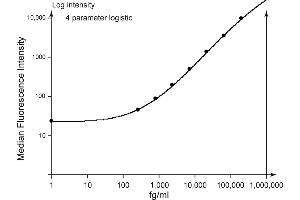 This BD CBA Enhanced Sensitivity Flex Set contains one vial each of Enhanced Sensitivity Capture Bead and Detection Reagent (Part A) and two vials of Standard. The Enhanced Sensitivity Detection Reagent (Part B) is provided in the BD CBA Mouse Enhanced Sensitivity Master Buffer Kit. The Enhanced Sensitivity Capture Bead and Detection Reagent (Part A) components of this flex set have been formulated to a 20x concentration to ensure product performance when multiplexed. The Standard component is lyophilized and when reconstituted according to the instructions in the BD CBA Mouse Enhanced Sensitivity Master Buffer kit, the top standard point for this assay is 200,000 fg/ml. Discard unused reconstituted standard, do not store or reuse. Store lyophilized standard and other components at 4°C. -