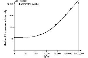 This BD CBA Enhanced Sensitivity Flex Set contains one vial each of Enhanced Sensitivity Capture Bead and Detection Reagent (Part A) and two vials of Standard. The Enhanced Sensitivity Detection Reagent (Part B) is provided in the BD CBA Mouse Enhanced Sensitivity Master Buffer Kit. The Enhanced Sensitivity Capture Bead and Detection Reagent (Part A) components of this flex set have been formulated to a 20x concentration to ensure product performance when multiplexed. The Standard component is lyophilized and when reconstituted according to the instructions in the BD CBA Mouse Enhanced Sensitivity Master Buffer kit, the top standard point for this assay is 200,000 fg/ml. Discard unused reconstituted standard, do not store or reuse. Store lyophilized standard and other components at 4°C. -
