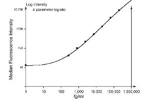 This BD CBA Enhanced Sensitivity Flex Set contains one vial each of Enhanced Sensitivity Capture Bead and Detection Reagent (Part A) and two vials of Standard. The Enhanced Sensitivity Detection Reagent (Part B) is provided in the BD CBA Mouse Enhanced Sensitivity Master Buffer Kit. The Enhanced Sensitivity Capture Bead and Detection Reagent (Part A) components of this flex set have been formulated to a 20x concentration to ensure product performance when multiplexed. The Standard component is lyophilized and when reconstituted according to the instructions in the BD CBA Mouse Enhanced Sensitivity Master Buffer kit, the top standard point for this assay is 200,000 fg/ml. Discard unused reconstituted standard, do not store or reuse. Store lyophilized standard and other components at 4°C. -