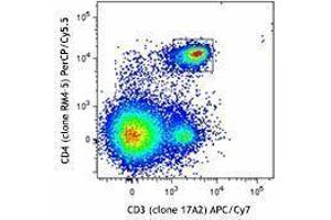 This reagent contains one vial each of APC/Cy7 conjugated anti-CD3 (clone 17A2), PerCP/Cy5.5 conjugated anti-CD4 (clone RM4-5), APC conjugated anti-CD62L (clone MEL-14), and PE conjugated anti-CD44 (clone IM7) at optimal concentration for four-color flow cytometric analysis.