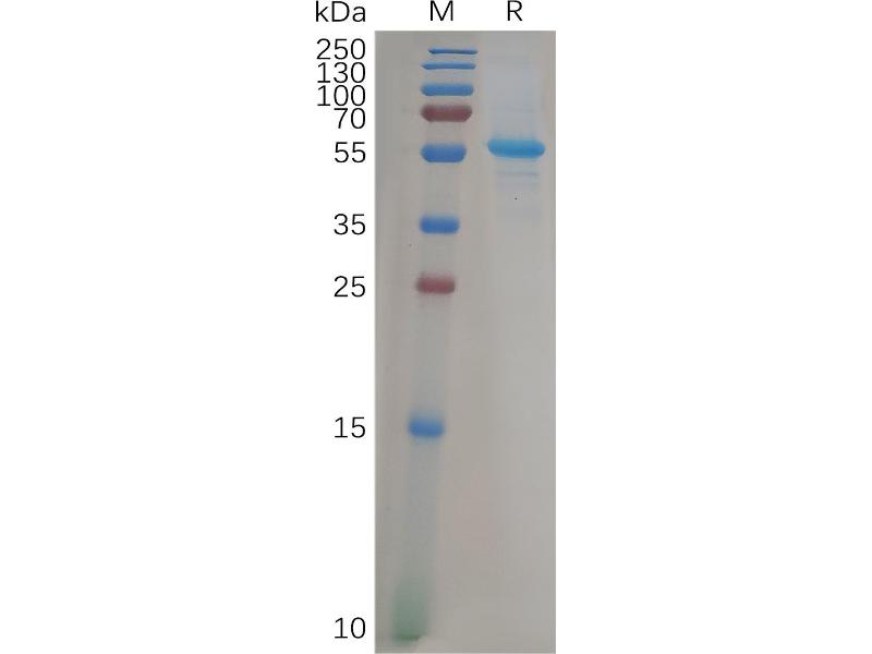 The purity of the protein is greater than 85 % as determined by SDS-PAGE and Coomassie blue staining.