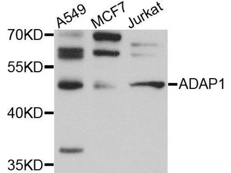 : "Identification of centaurin-alpha1 as a potential in vivo phosphatidylinositol 3,4,5-trisphosphate-binding protein that is functionally homologous to the yeast ADP-ribosylation factor (ARF) ..." in: The Biochemical journal, Vol. 340 ( Pt 2), pp. 359-63, (1999) (PubMed).Aliase für ADAP1 Antikörper