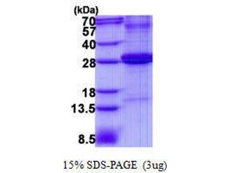 The purity of the protein is greater than 85 % as determined by SDS-PAGE and Coomassie blue staining.