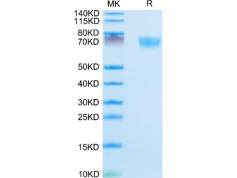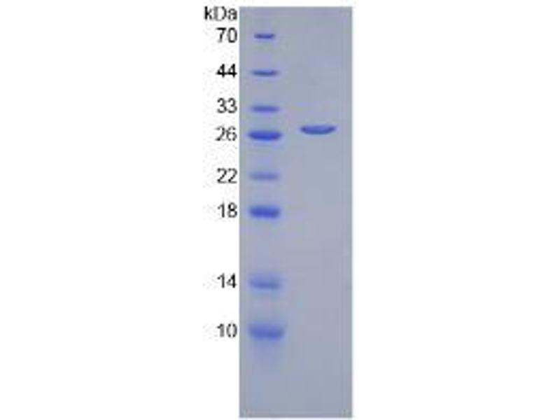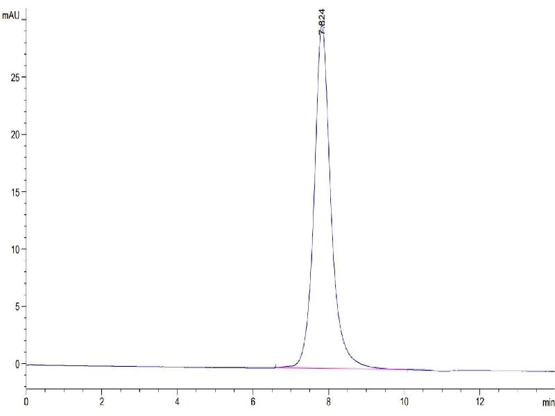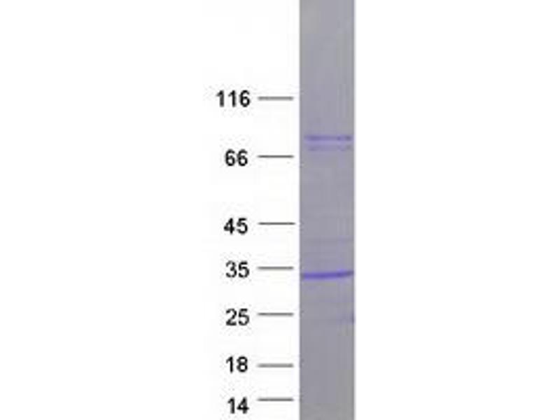 The purity of the protein is greater than 95 % as determined by SDS-PAGE and Coomassie blue staining.