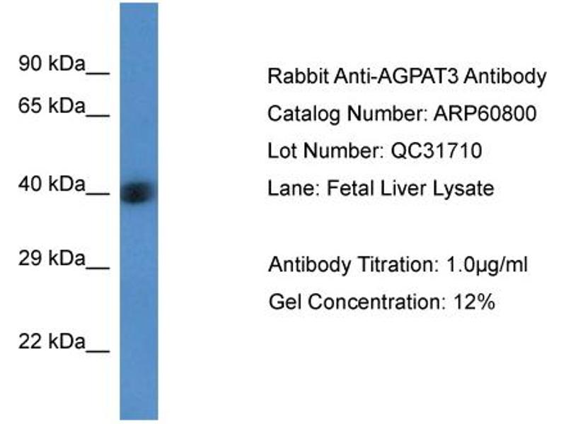 AGPAT3 Reaktivität: Human, Maus, Ratte, Rind (Kuh), Hund, Schwein, Zebrafisch (Danio rerio), Meerschweinchen, Pferd WB Wirt: Kaninchen Polyclonal unconjugated