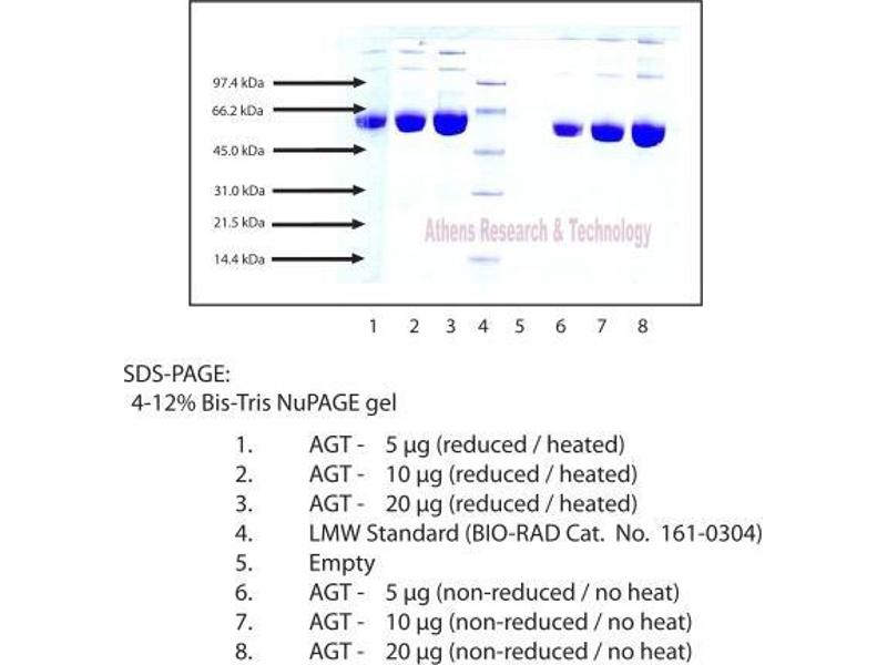 The protein encoded by this gene, pre-angiotensinogen or angiotensinogen precursor, is expressed in the liver and is cleaved by the enzyme renin in response to lowered blood pressure. The resulting product, angiotensin I, is then cleaved by angiotensin converting enzyme (ACE) to generate the physiologically active enzyme angiotensin II. The protein is involved in maintaining blood pressure and in the pathogenesis of essential hypertension and preeclampsia. Mutations in this gene are associated with susceptibility to essential hypertension, and can cause renal tubular dysgenesis, a severe disorder of renal tubular development. Defects in this gene have also been associated with non-familial structural atrial fibrillation, and inflammatory bowel disease. [provided by RefSeq, Jul 2008].