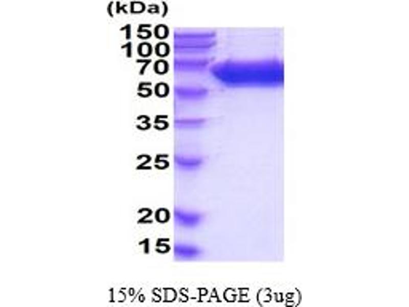 The purity of the protein is greater than 85 % as determined by SDS-PAGE and Coomassie blue staining.
