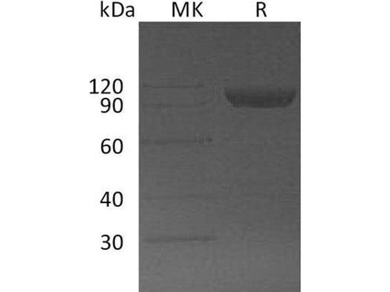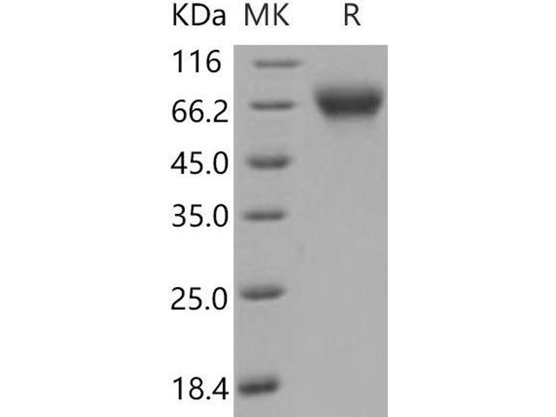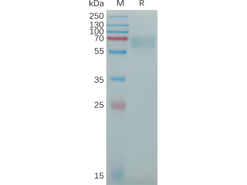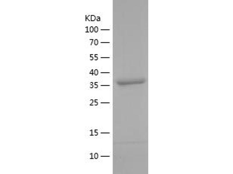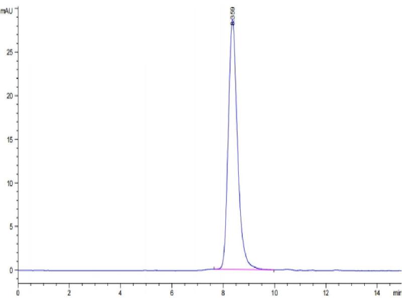 The purity of the protein is greater than 85 % as determined by SDS-PAGE and Coomassie blue staining.
