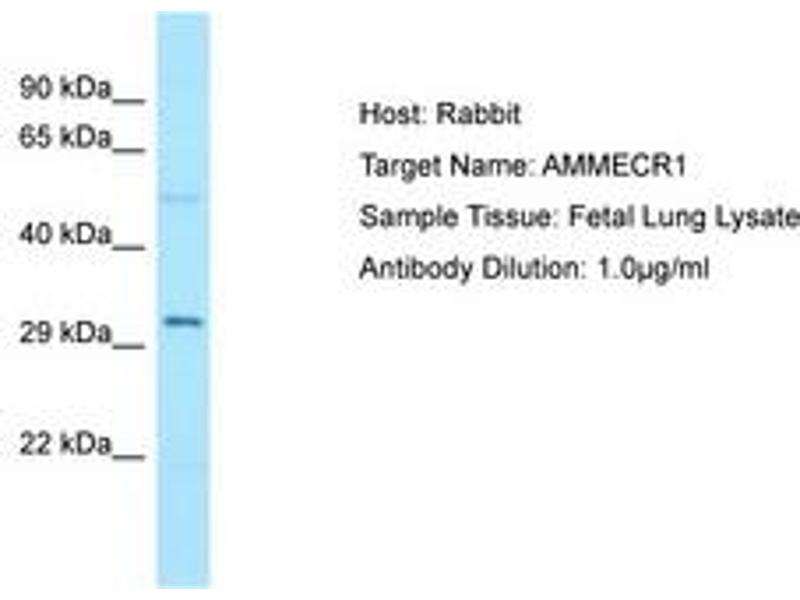 Alport syndrome, mental retardation, midface hypoplasia and elliptocytosis chromosomal region gene 1 L homeolog (ammecr1.L) AntikörperAlport syndrome, mental retardation, midface hypoplasia and elliptocytosis chromosomal region gene 1 (AMMECR1) Antikörper