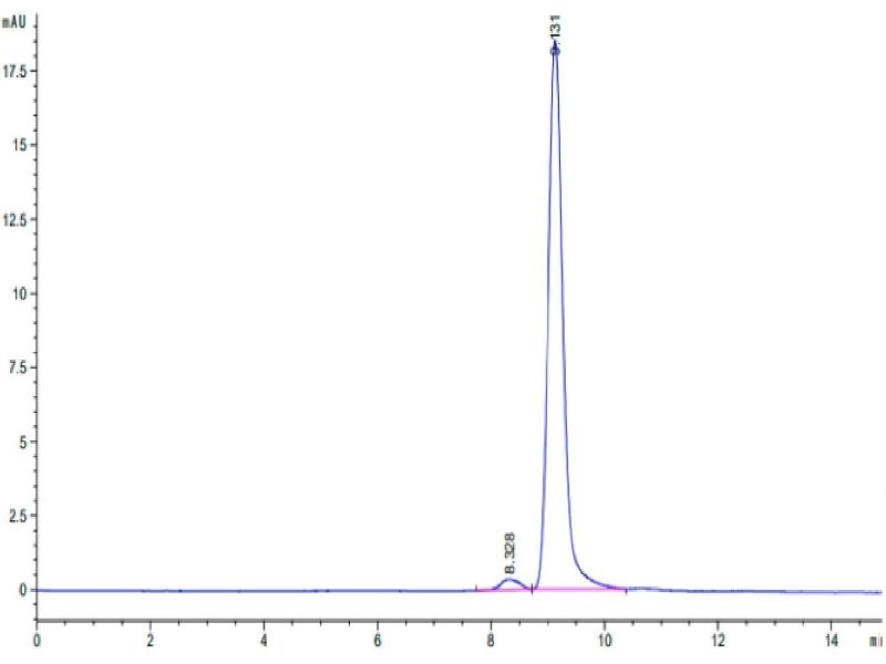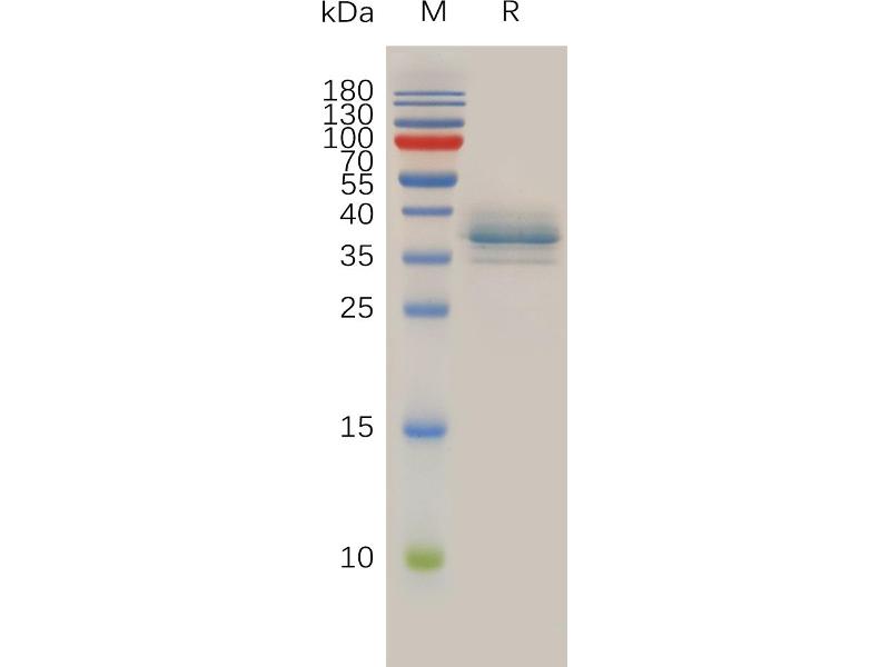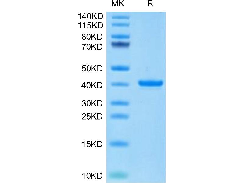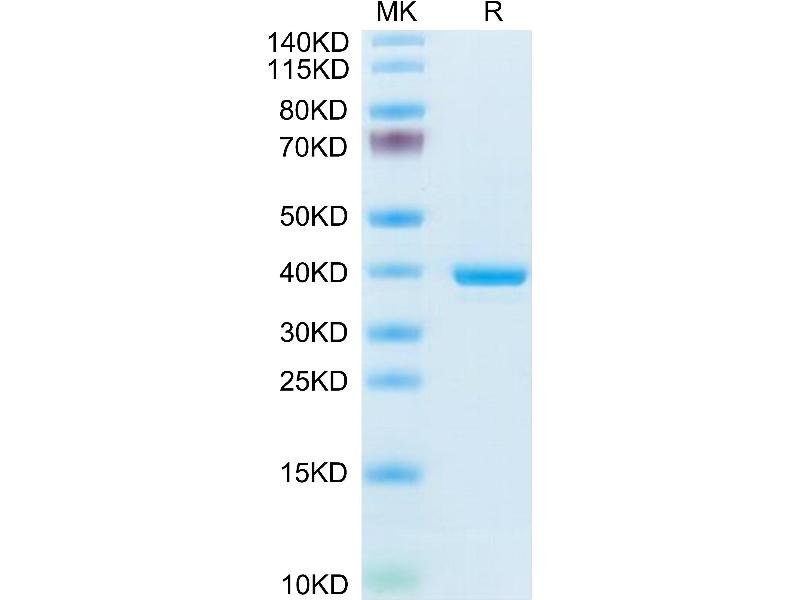 The purity of the protein is greater than 85 % as determined by SDS-PAGE and Coomassie blue staining.