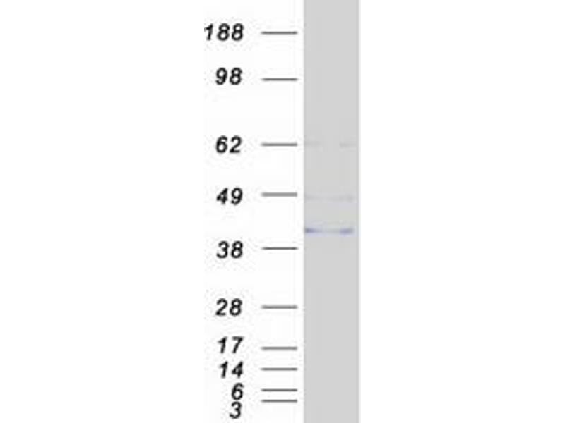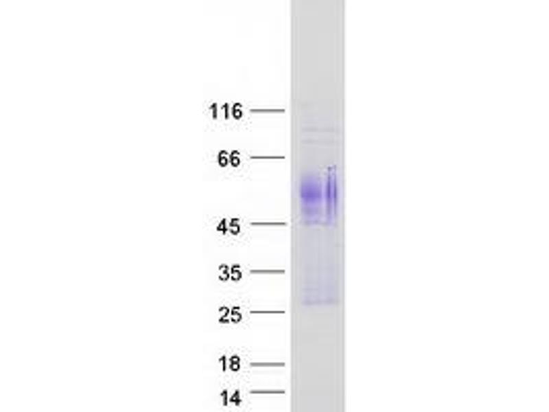 The purity of the protein is greater than 95 % as determined by SDS-PAGE and Coomassie blue staining.