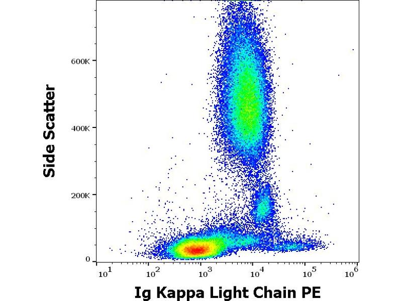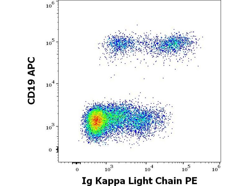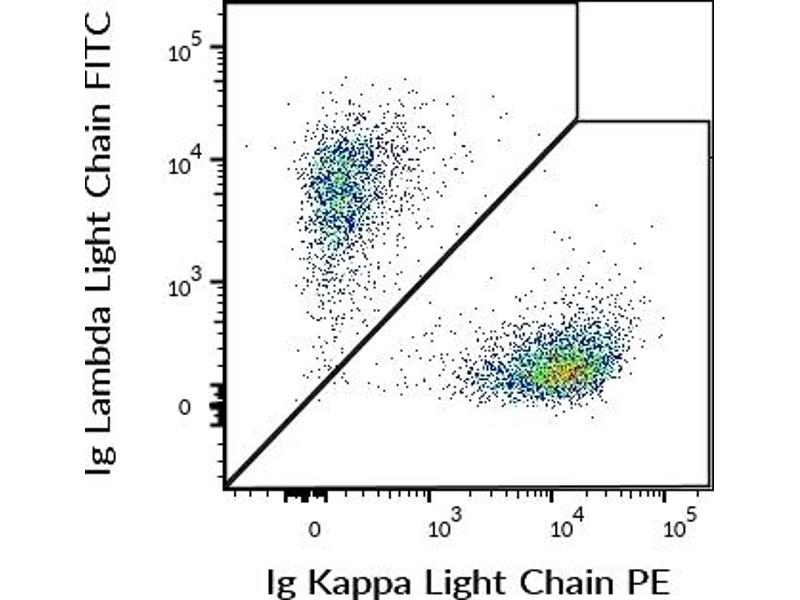 The antibody TB28-2 recognizes human Ig kappa light chains of both secreted and cell surface immunoglobulin. It detects also free kappa light chains.