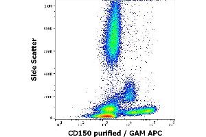 The mouse monoclonal antibody SLAM.4 recognizes an extracellular epitope of CD150, a cell surface molecule expressed on lymphocytes and involved in their activation.