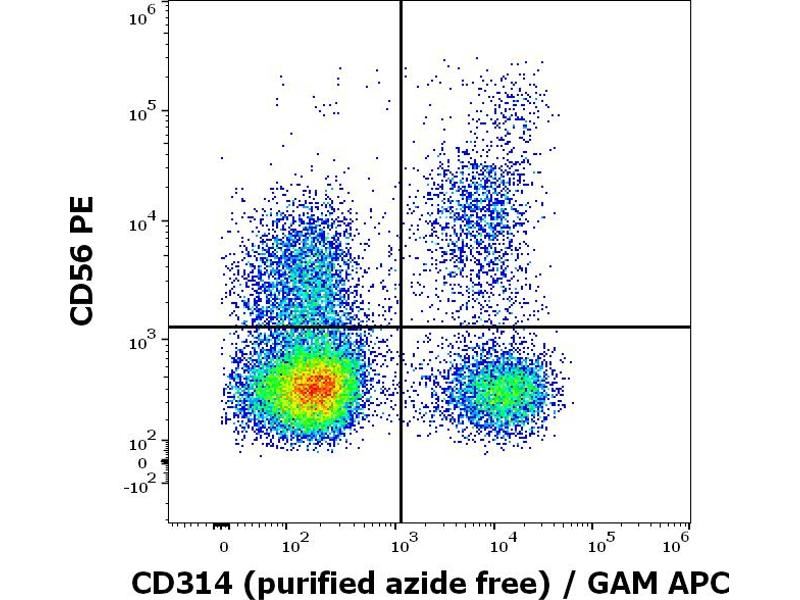 The mouse monoclonal antibody 1D11 recognizes an extracellular epitope of CD314 / NKG2D, a 42 kDa C-type lectin-like activating receptor expressed by NK cells, gamma/delta T cells, and CD8+ T cells.