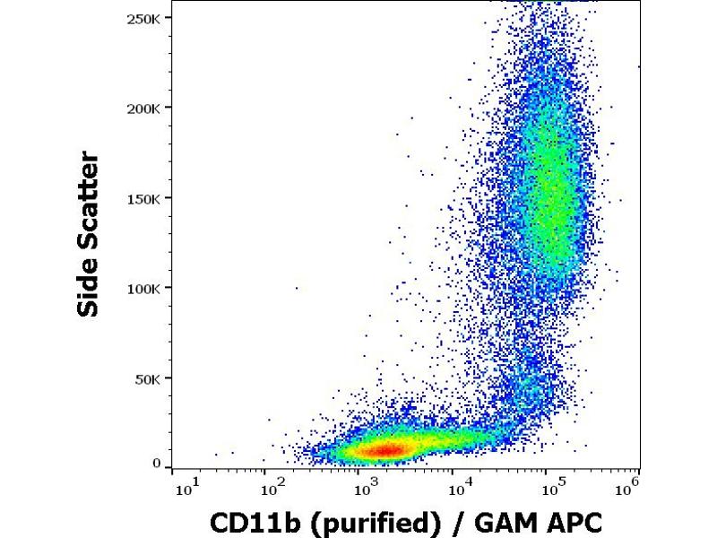 The mouse monoclonal antibody ICRF44 recognizes an extracellular epitope of CD11b (Mac-1alpha), a 165-170 kDa type 1 transmembrane protein mainly expressed on monocytes, granulocytes and NK-cells.