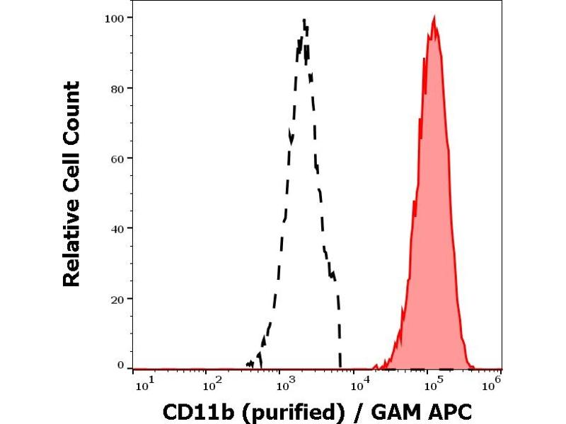 Integrin subunit alpha M,CD11b (integrin alphaM subunit) is a 165-170 kDa type I transmembrane glycoprotein that non-covalently associates with integrin beta2 subunit (CD18), expression of the CD11b chain on the cell surface requires the presence of the CD18 antigen. CD11b/CD18 integrin (Mac-1, CR3) is highly expressed on NK cells, neutrophils, monocytes and less on macrophages. CD11b/CD18 integrin is implicated in various adhesive interactions of monocytes, macrophages and granulocytes, facilitating their diapedesis, as well as it mediates the uptake of complement coated particles, serving as a receptor for the iC3b fragment of the third complement component.,Mac-1, Integrin alpha M, ITGAM, CR3A, MO1A, MAC1A