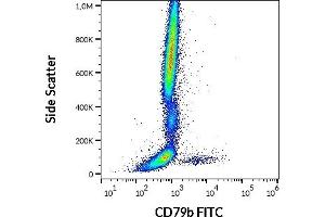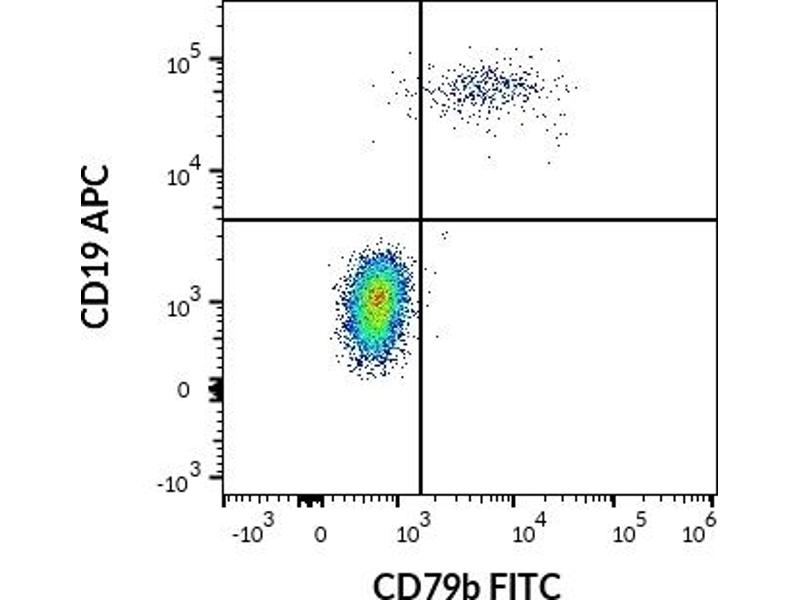 Der FITC-konjugierte Maus Monoklonal anti-CD79b Antikörper (Klon CB3-1) (ABIN1027695) detektiert spezifisch CD79b in FACS.