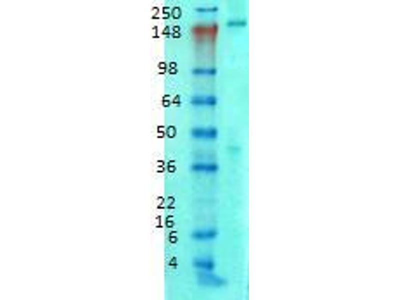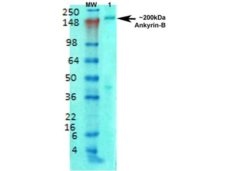 - Detects ~200 kDa. No cross reactivity against Ankyrin-G.