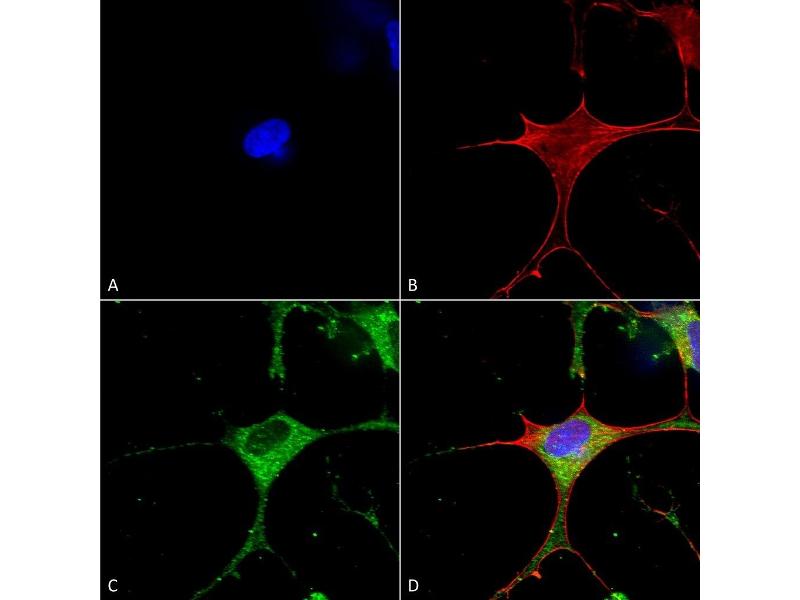 1 μg/ml of ABIN1027722 was sufficient for detection of Clcn3 in 20 μg of rat brain membrane lysate and assayed by colorimetric immunoblot analysis using goat anti-mouse IgG:HRP as the secondary antibody.