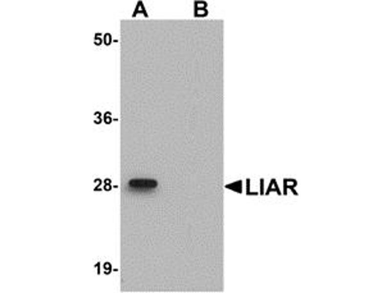- LIAR antibody can be used for detection of LIAR by Western blot at 1 - 2 μg/mL.