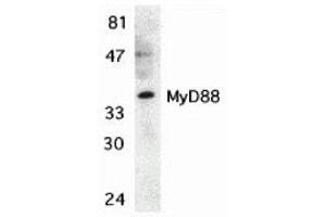 - MYD88 antibody can be used for detection of MyD88 by Western blot 0.5 - 1 μg/mL. An approximately 35 kDa band can be detected. For immunohistochemistry use a concentration of 4 μg/mL. For immunofluorescence and immunocytochemistry use a concentration of 5 μg/mL.