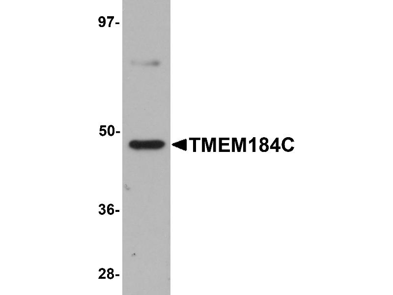 TMEM184 °C antibody can be used for detection of TMEM184 °C by Western blot at 1 - 2 μg/mL.