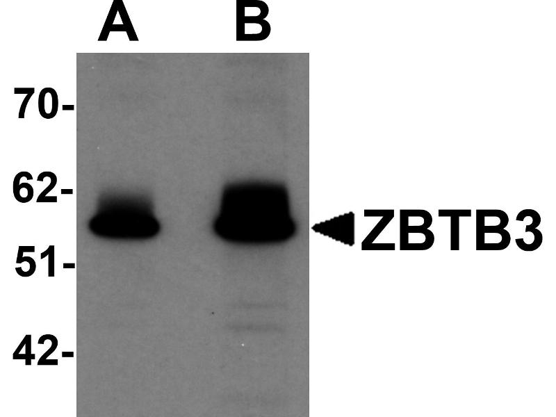 ZBTB3 antibody can be used for detection of ZBTB3 by Western blot at 1 - 2 μg/mL.