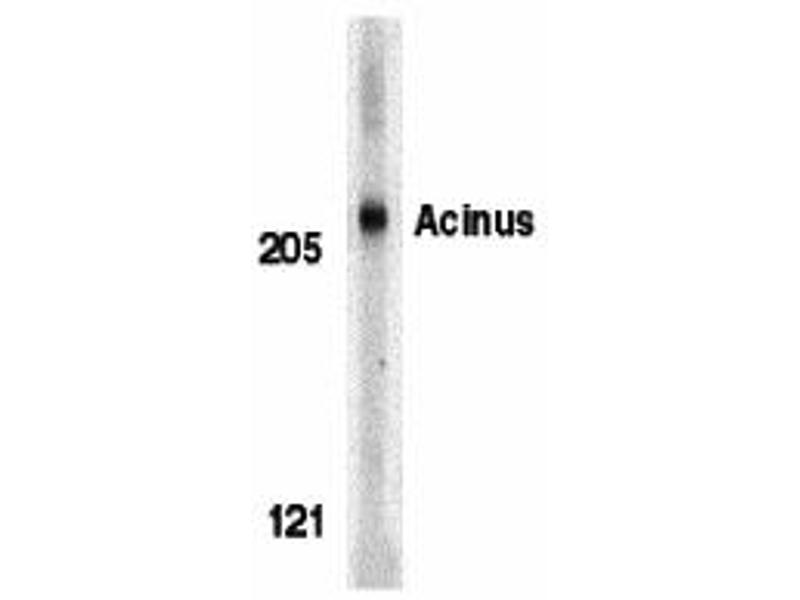 Acinus antibody can be used for detection of Acinus by Western blot at 0.5 to 1 μg/mL. A 220 kDa band can be detected.