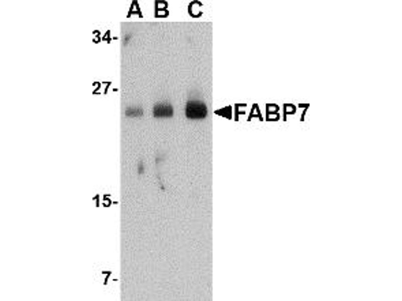 FABP7 antibody can be used for detection of FABP7 by Western blot at 0.5 - 1 μg/mL.