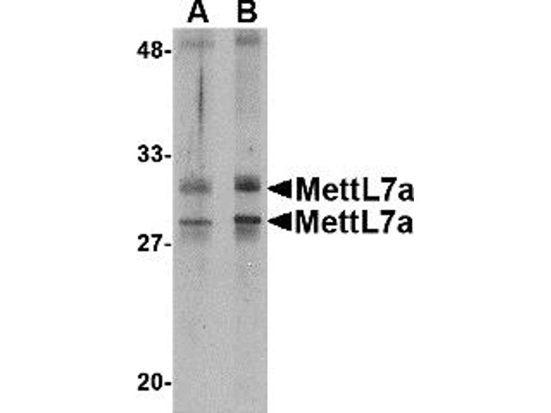 MettL7A antibody can be used for detection of MettL7A by Western blot at 2 - 4 μg/mL.
