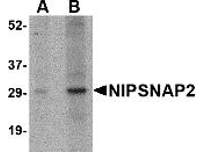 - NIPSNAP2 antibody can be used for detection of NIPSNAP2 by Western blot at 1 - 2 μg/mL.