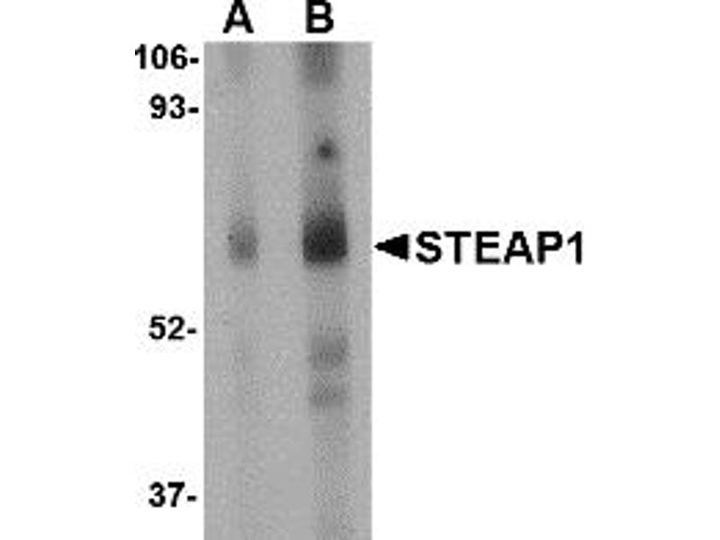 STEAP1 antibody can be used for detection of STEAP1 by Western blot at 1 - 2 μg/mL.