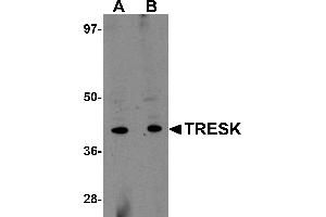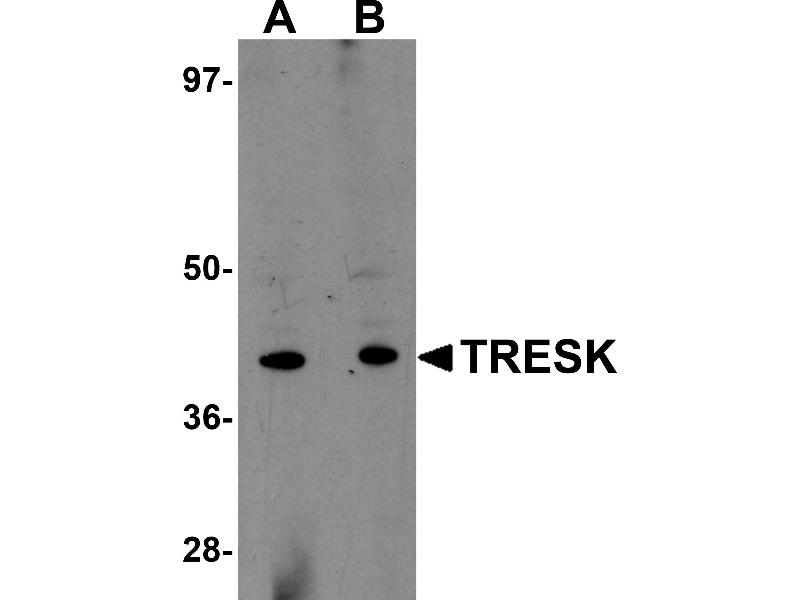 TRESK antibody can be used for detection of TRESK by Western blot at 1 - 2 μg/mL.