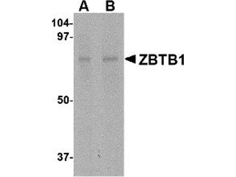 ZBTB1 antibody can be used for detection of ZBTB1 by Western blot at 1 - 2 μg/mL.