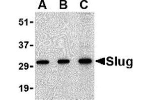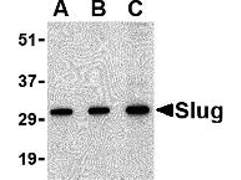 - Slug antibody can be used for detection of Slug by Western blot at 1 to 2 μg/mL.