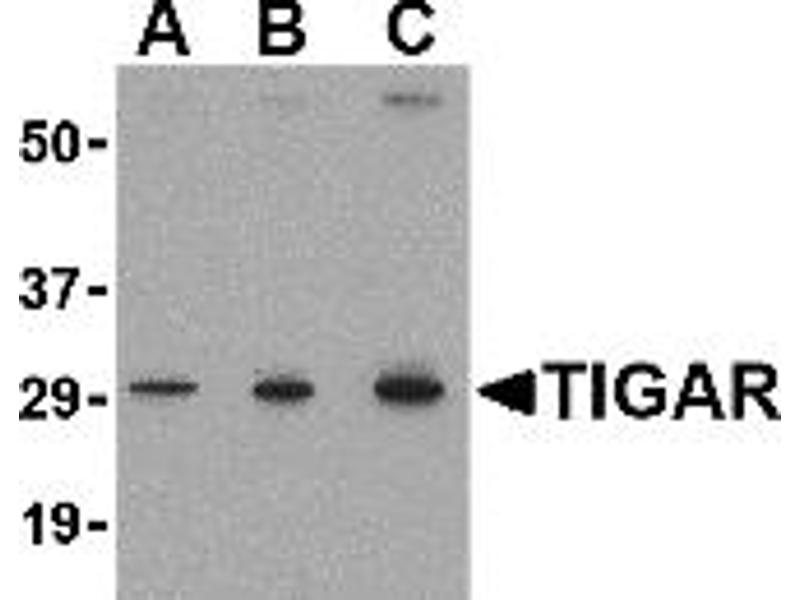 TIGAR antibody can be used for detection of TIGAR by Western blot at 0.5 - 1 μg/mL.