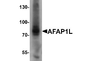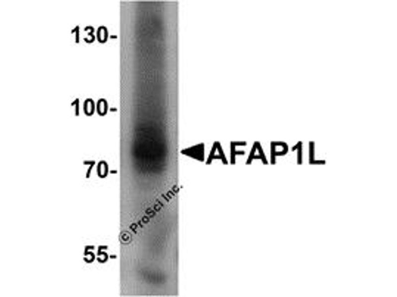 AFAP1L1 antibody can be used for detection of AFAP1L1 by Western blot at 1 μg/mL. Antibody can also be used for immunocytochemistry starting at 5 μg/mL. For immunofluorescence start at 20 μg/mL. Optimal dilutions for each application to be determined by the researcher.