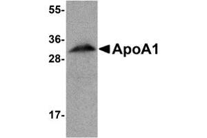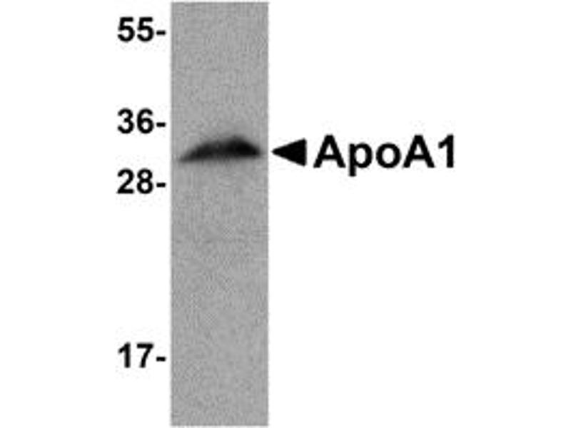 ApoA1 antibody can be used for detection of ApoA1 by Western blot at 1 - 2 μg/mL.