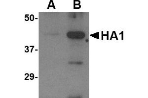 Avian influenza hemagglutinin antibody can be used for the detection of the avian influenza hemagglutinin protein from the H5N1 strain of avian influenza A in ELISA. It will detect 10 ng of free peptide at 1 μg/mL.