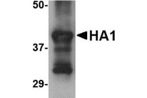 Hemagglutinin antibody can be used for detection of H5 HA1 by Western blot at 1 - 2.5 μg/mL.