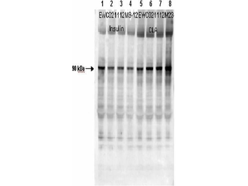Immunogen: Human Muscle Glycogen Synthase phospho peptide corresponding to pS641 region of the human protein conjugated to Keyhole Limpet Hemocyanin (KLH).