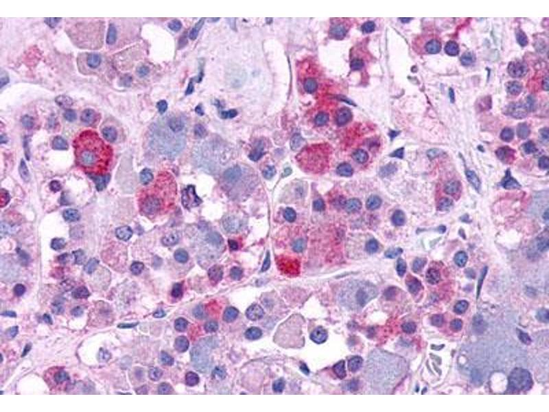 Human AVPR1B. BLAST analysis of the peptide immunogen showed no homology with other human proteins.