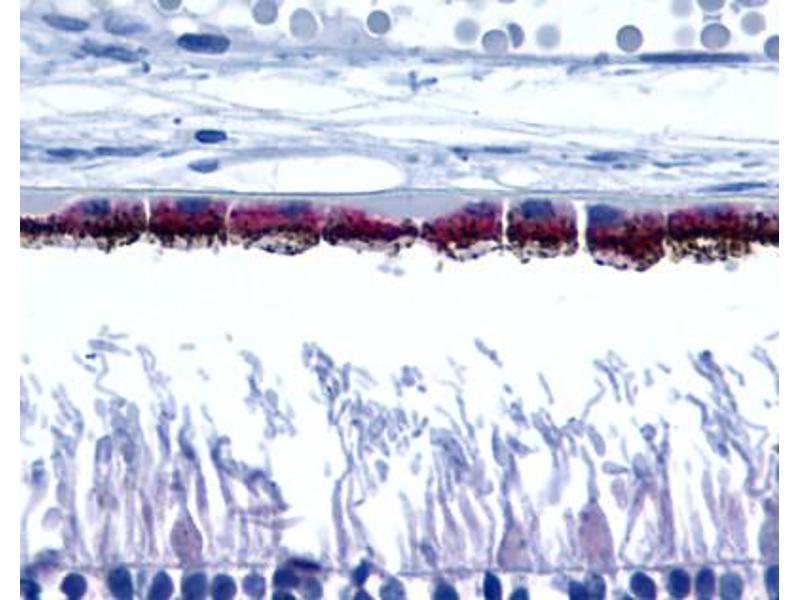 - Human RRH / Peropsin. BLAST analysis of the peptide immunogen showed no homology with other human proteins.