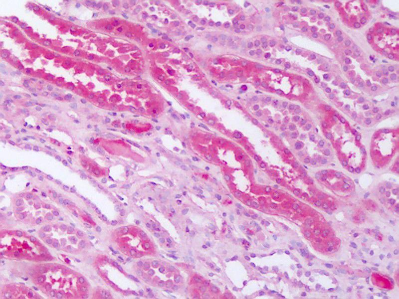 Usage: Immunohistochemistry: This antibody was validated for use in immunohistochemistry on a panel of 21 formalin-fixed, paraffin-embedded (FFPE) human tissues after heat induced antigen retrieval in pH 6.0 citrate buffer. After incubation with the primary antibody, slides were incubated with biotinylated secondary antibody, followed by alkaline phosphatase-streptavidin and chromogen. The stained slides were evaluated by a pathologist to confirm staining specificity. The optimal working concentration for this antibody was determined to be 10 μg/mL. -